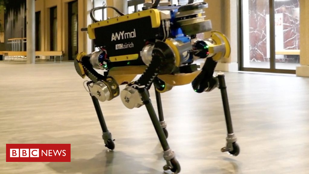 A four-legged robot is being taught how to balance on wheels to help it carry out search-and-rescue missions.