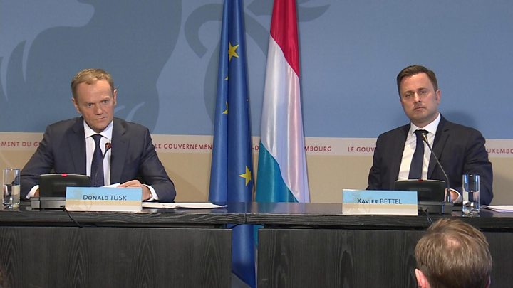 Media captionTusk: Theresa May wants Brexit success “at any price”